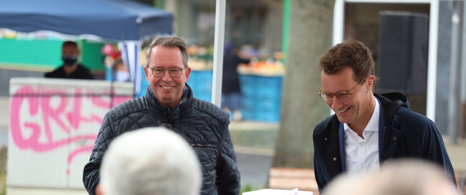 Hendrik Wüst MdL am Infostand in Eilendorf.