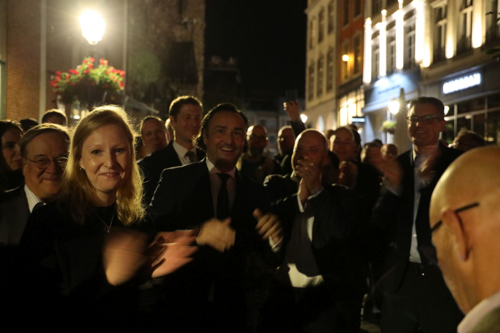 Mit 50.126 Stimmen in Aachen (55,95%) und 112.164 Stimmen (62,51%) in der gesamten StädteRegion wurde Dr. Tim Grüttemeier deutlich im Amt bestätigt. Auch er kam natürlich im Laufe des Abends zur Wahlparty im Hexenhof am Apfelbaum und bedankte sich gemeinsam mit Michael Ziemons für die großartige Unterstützung im Wahlkampf.
