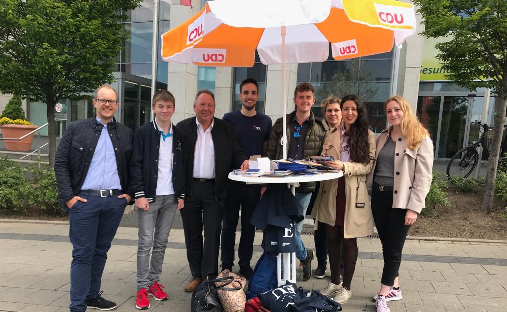 Eine gemeinsame Wahlkampfaktion für Europa und Sabine Verheyen MdEP von den Stadtbezirksverbänden Forst und Aachen-Ost vor den Aachen Arkaden leitet den Endspurt ein.