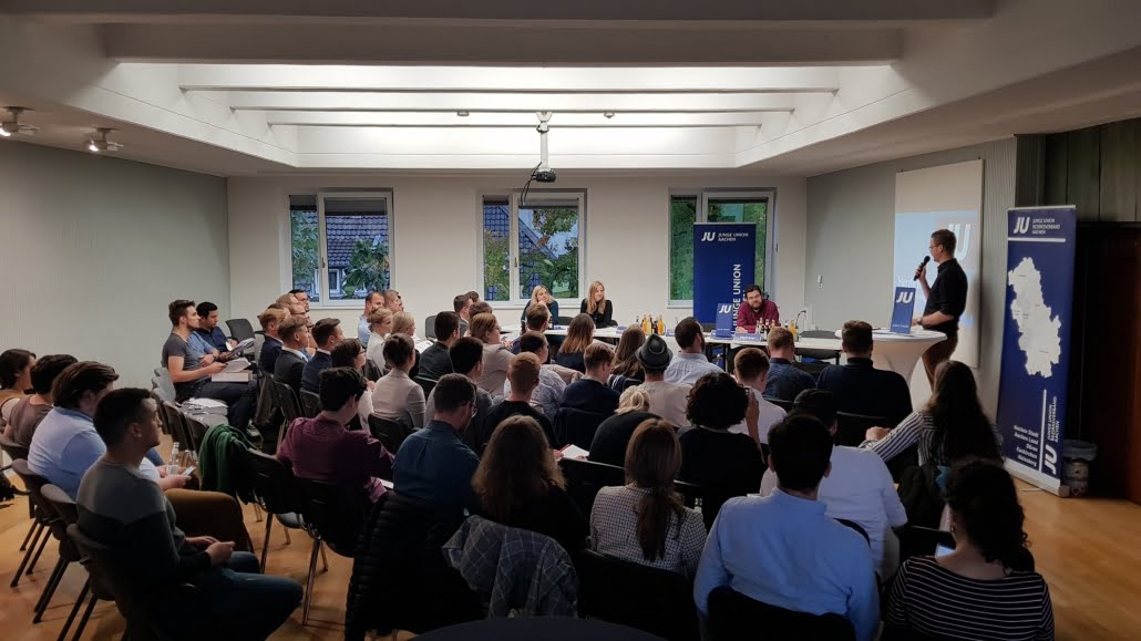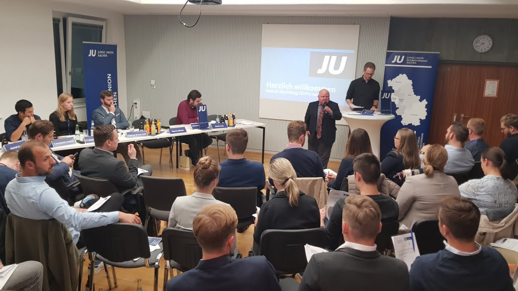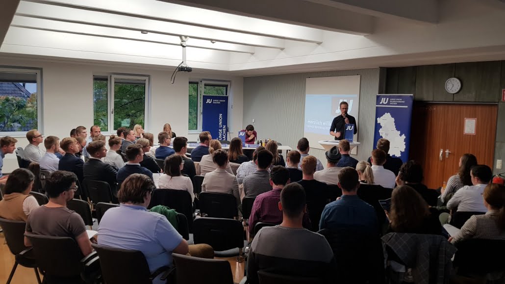 Der Landesvorsitzende Florian Braun gab einen Impuls und berichtete von den aktuellen Entwicklungen in Nordrhein-Westfalen. Außerdem blickte er bereits auf die Kommunalwahl 2020 und forderte, dass die JU bei der Kommunalwahl große Berücksichtigung findet. Neben weiteren JUlern aus anderen Bezirksverbänden hielt auch der stellv. Vorsitzende der CDU Aachen, Wolfgang Königs, ein Grußwort.